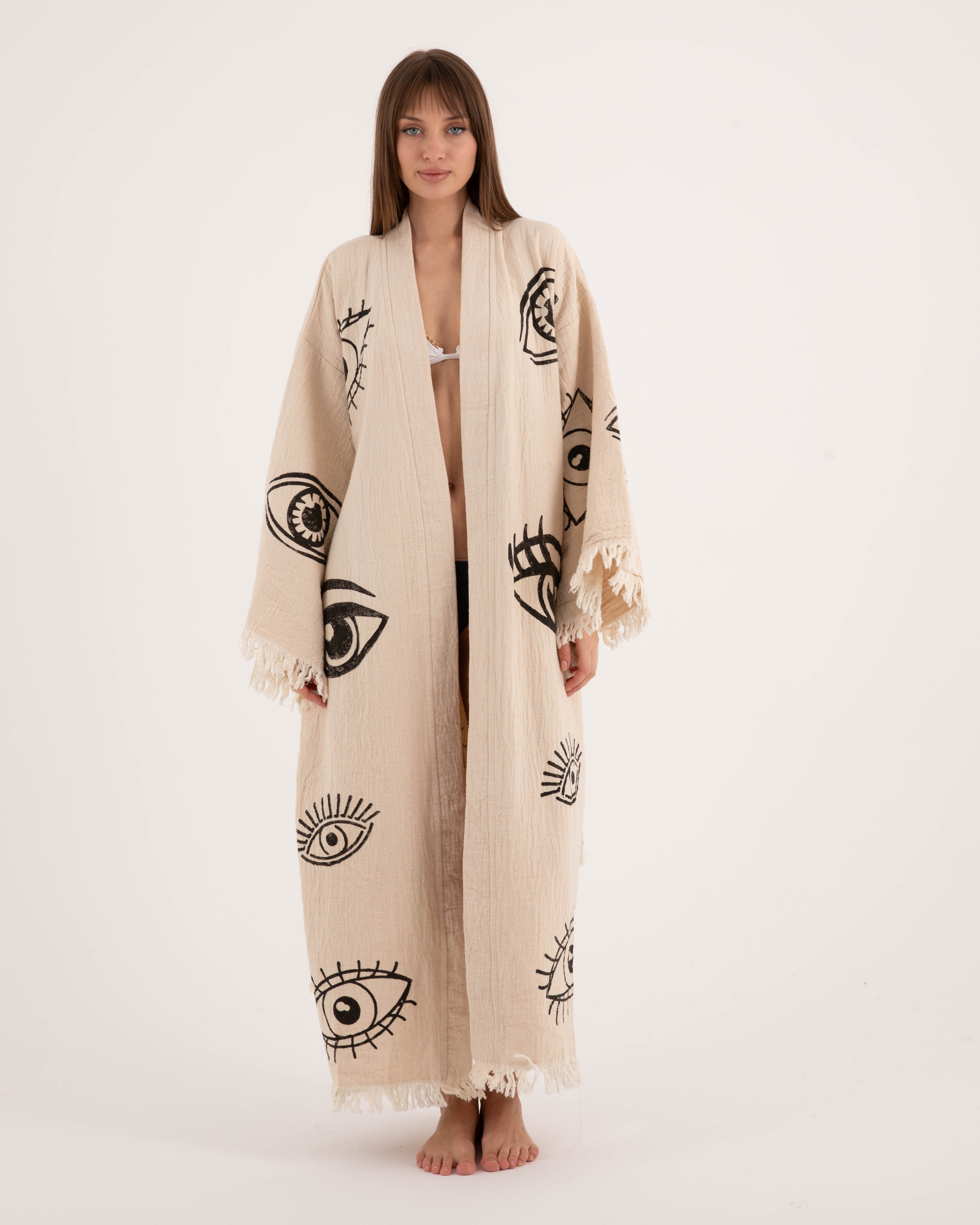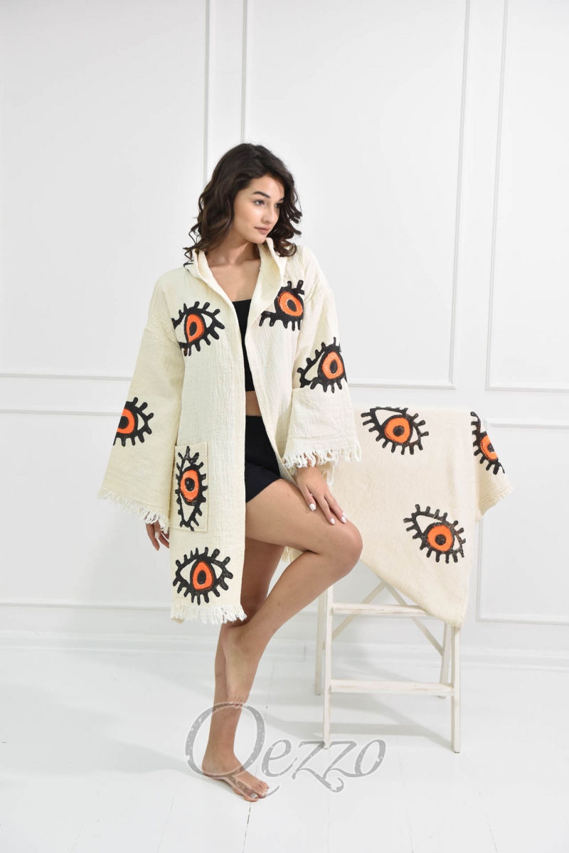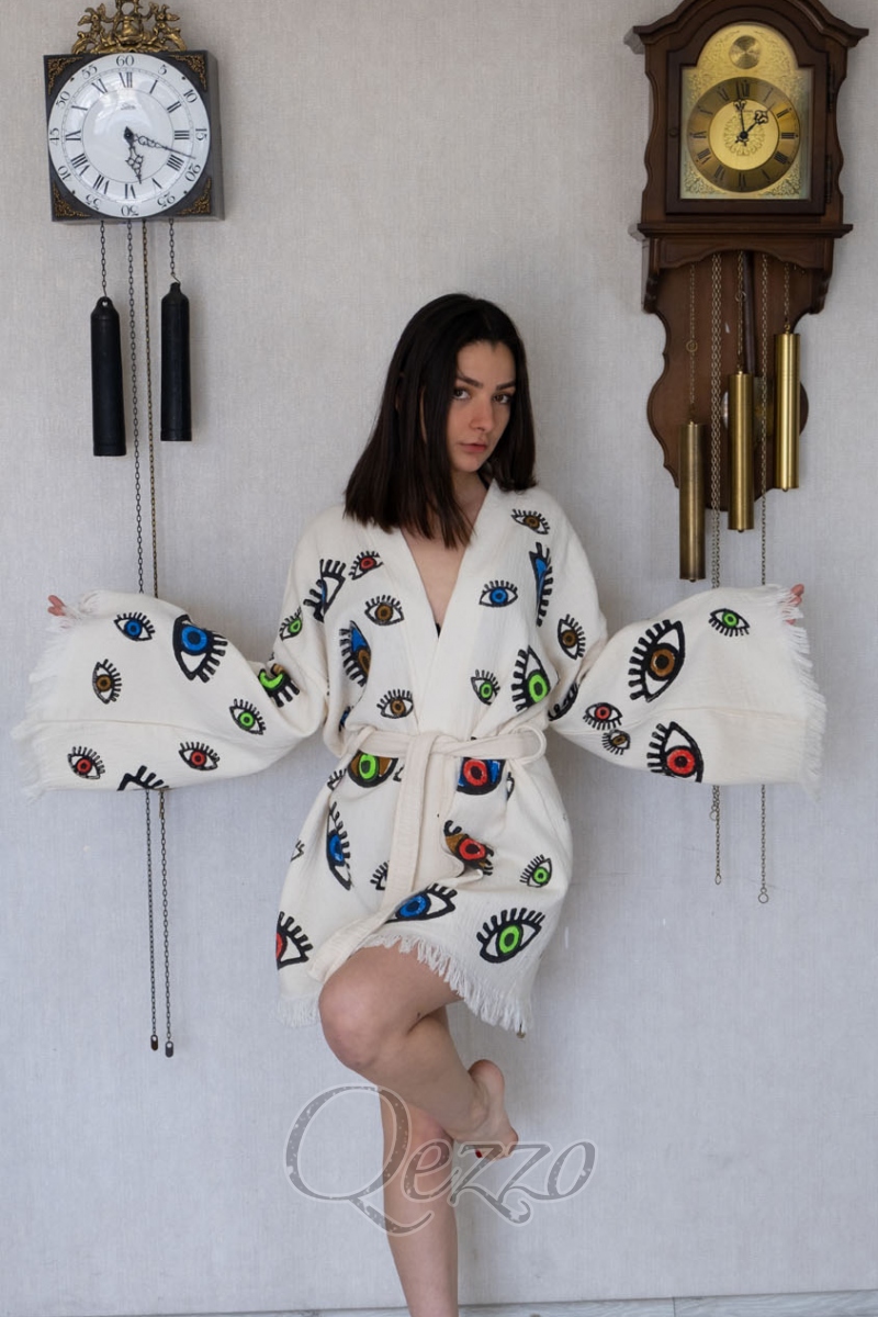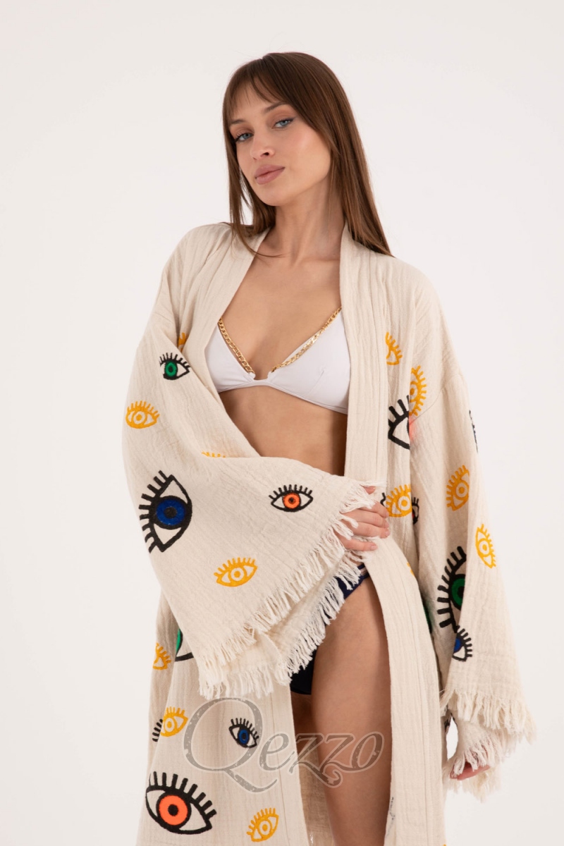 Göz Detaylı Krem Kimono