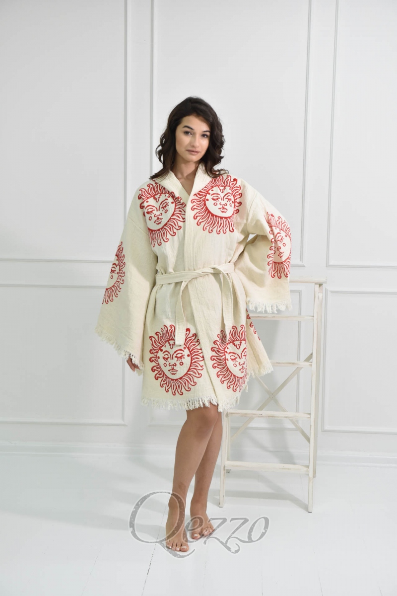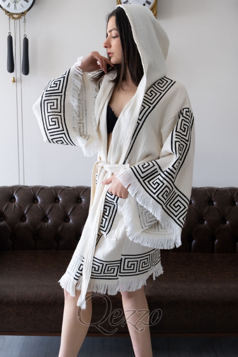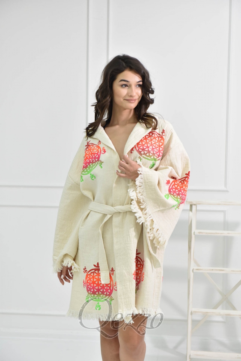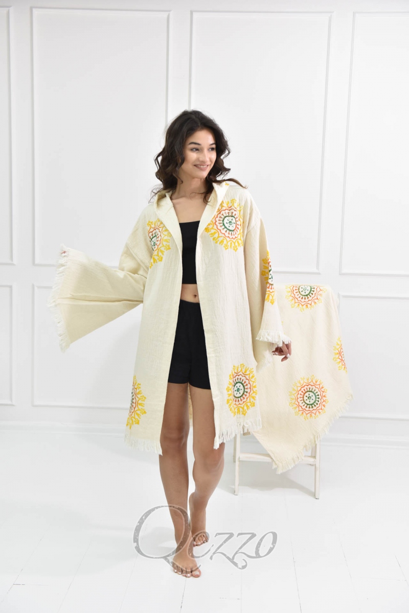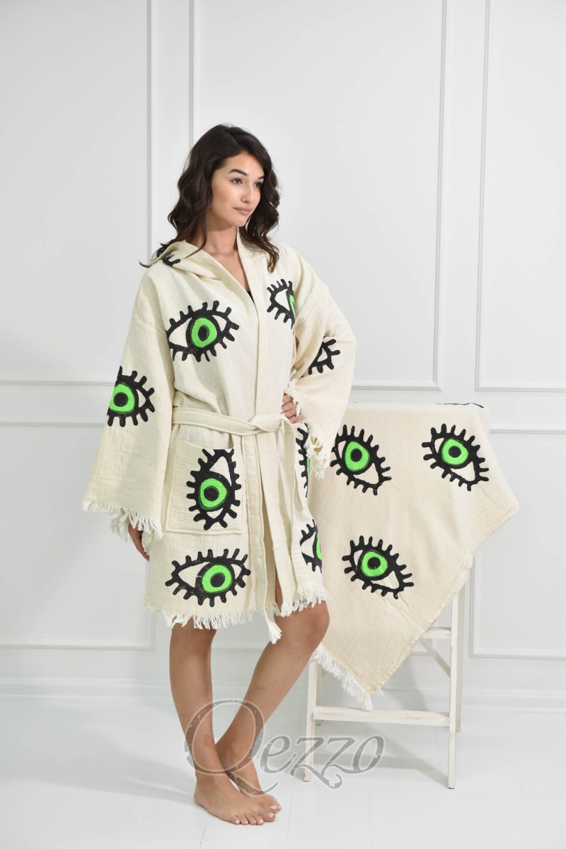Göz Detaylı Krem Kimono