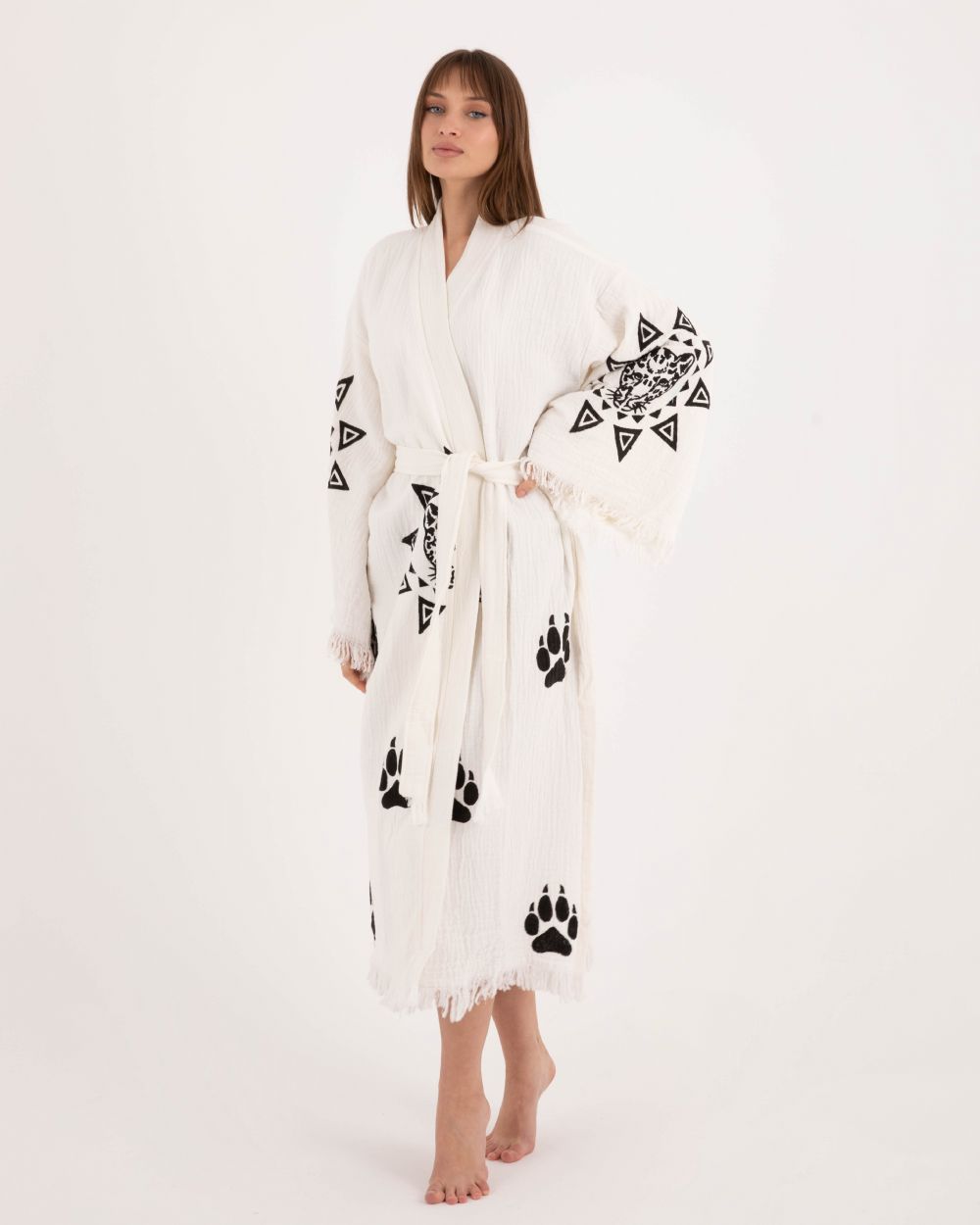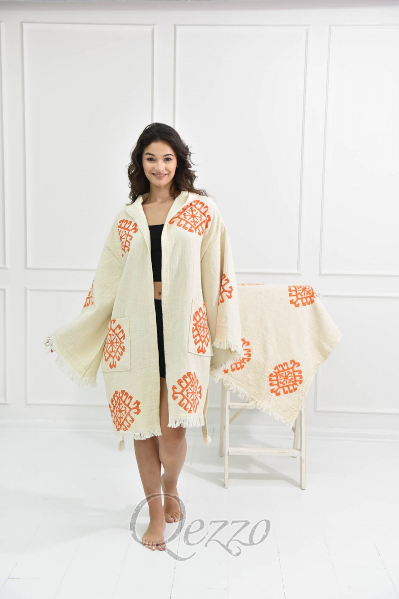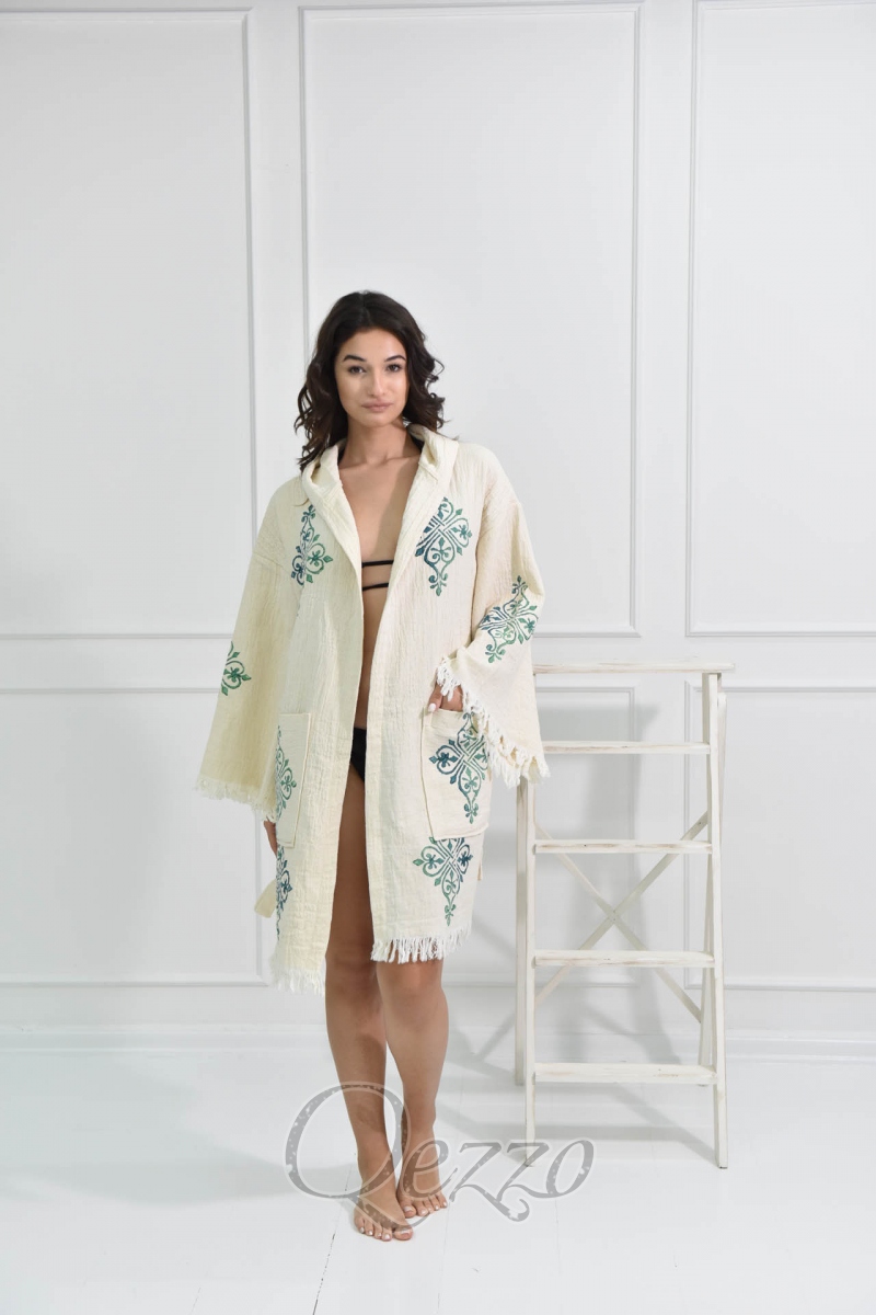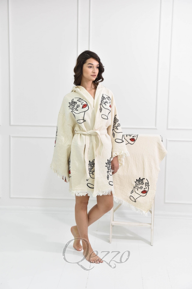 Göz Detaylı Krem Kimono
