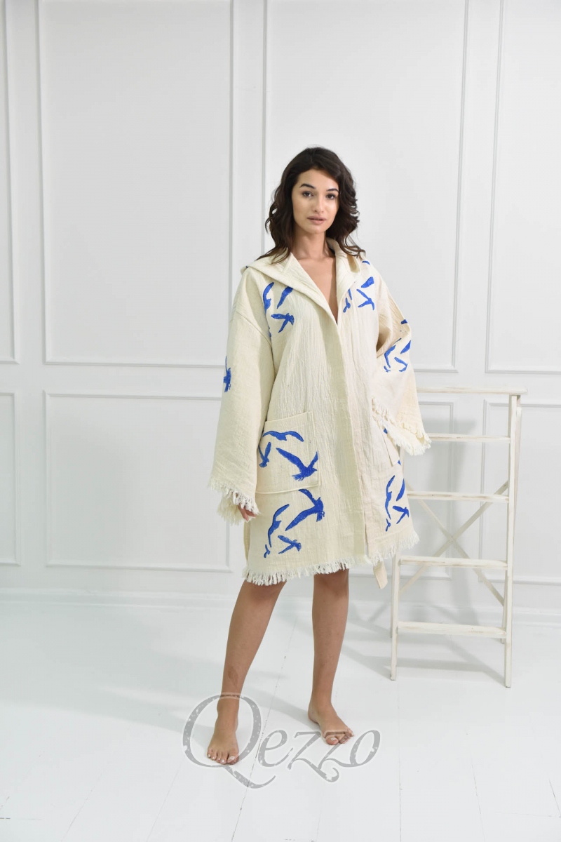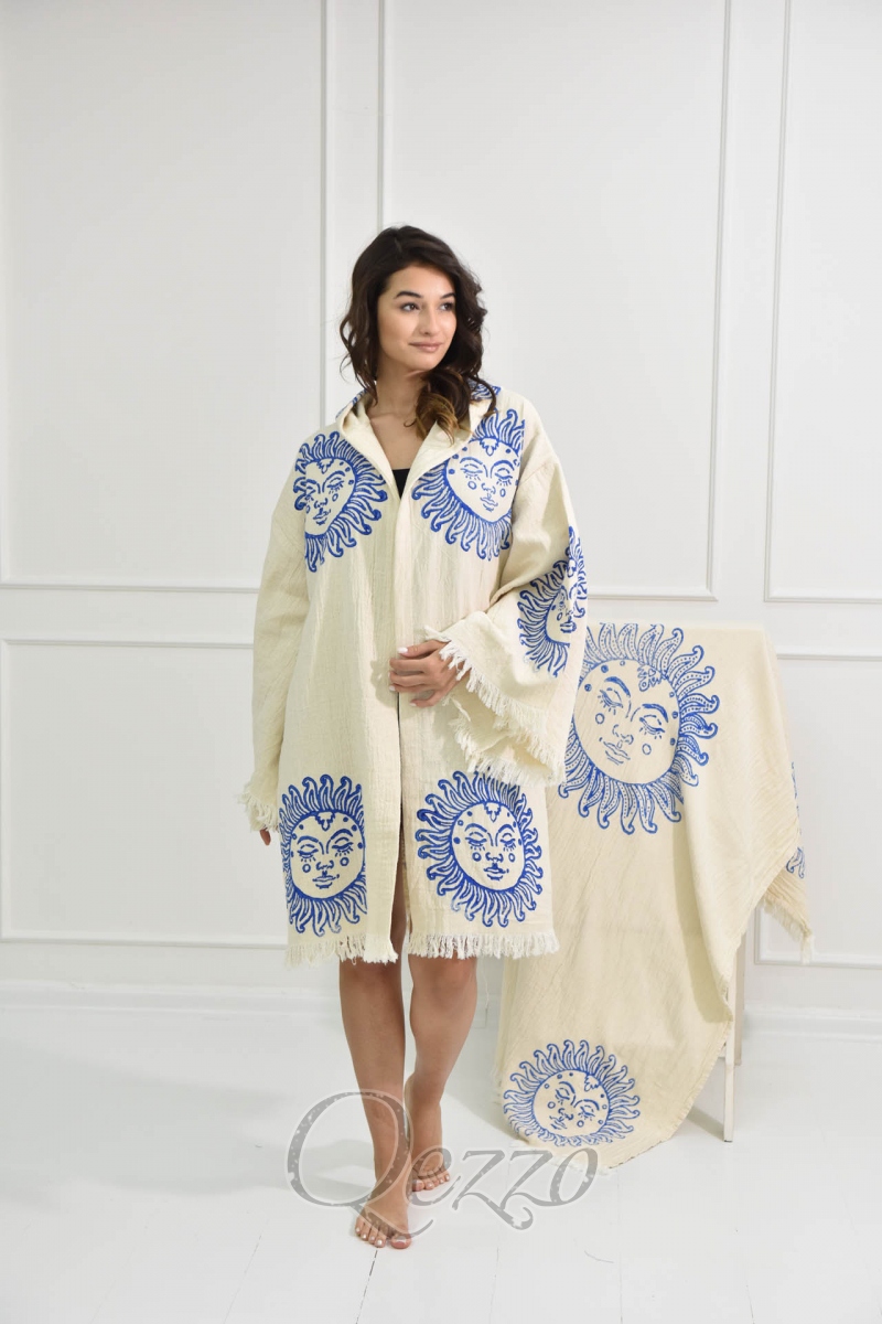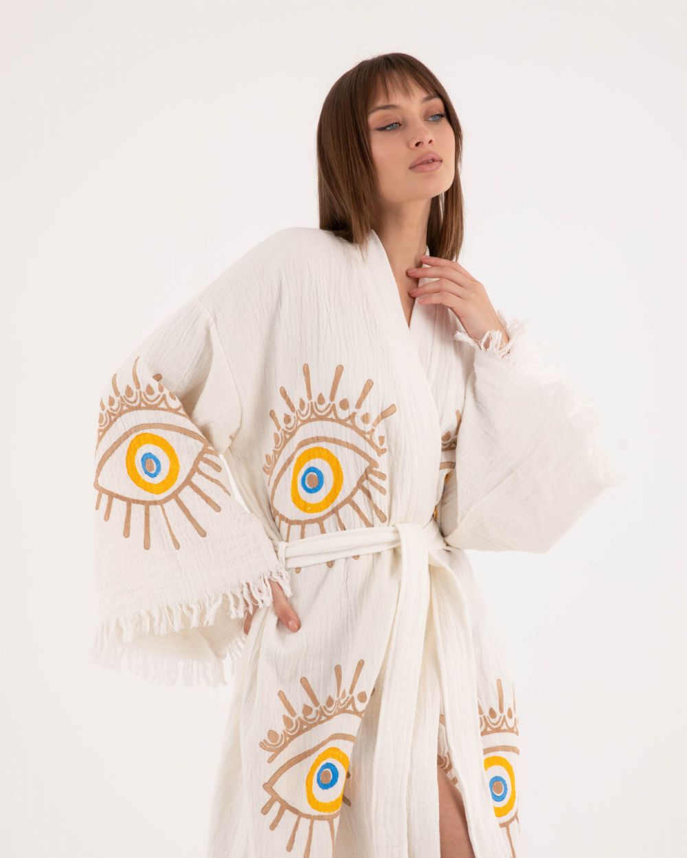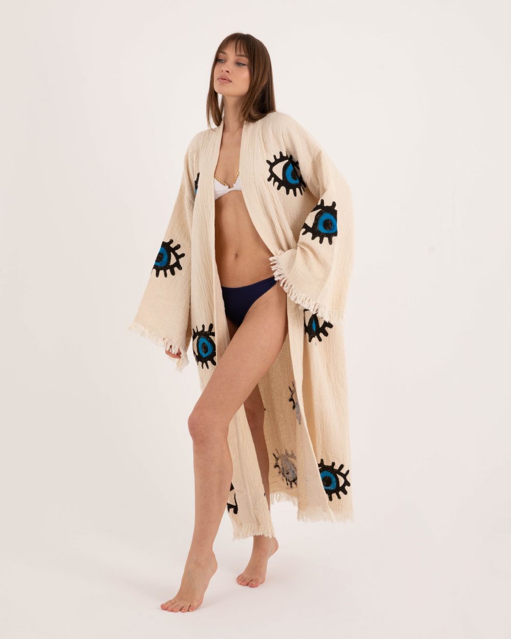 Mavi Göz Detaylı Krem Kimono