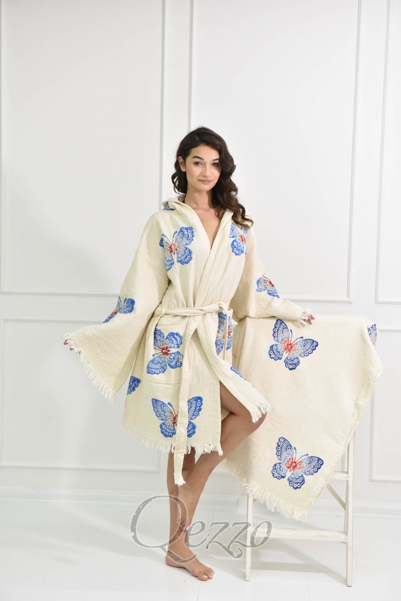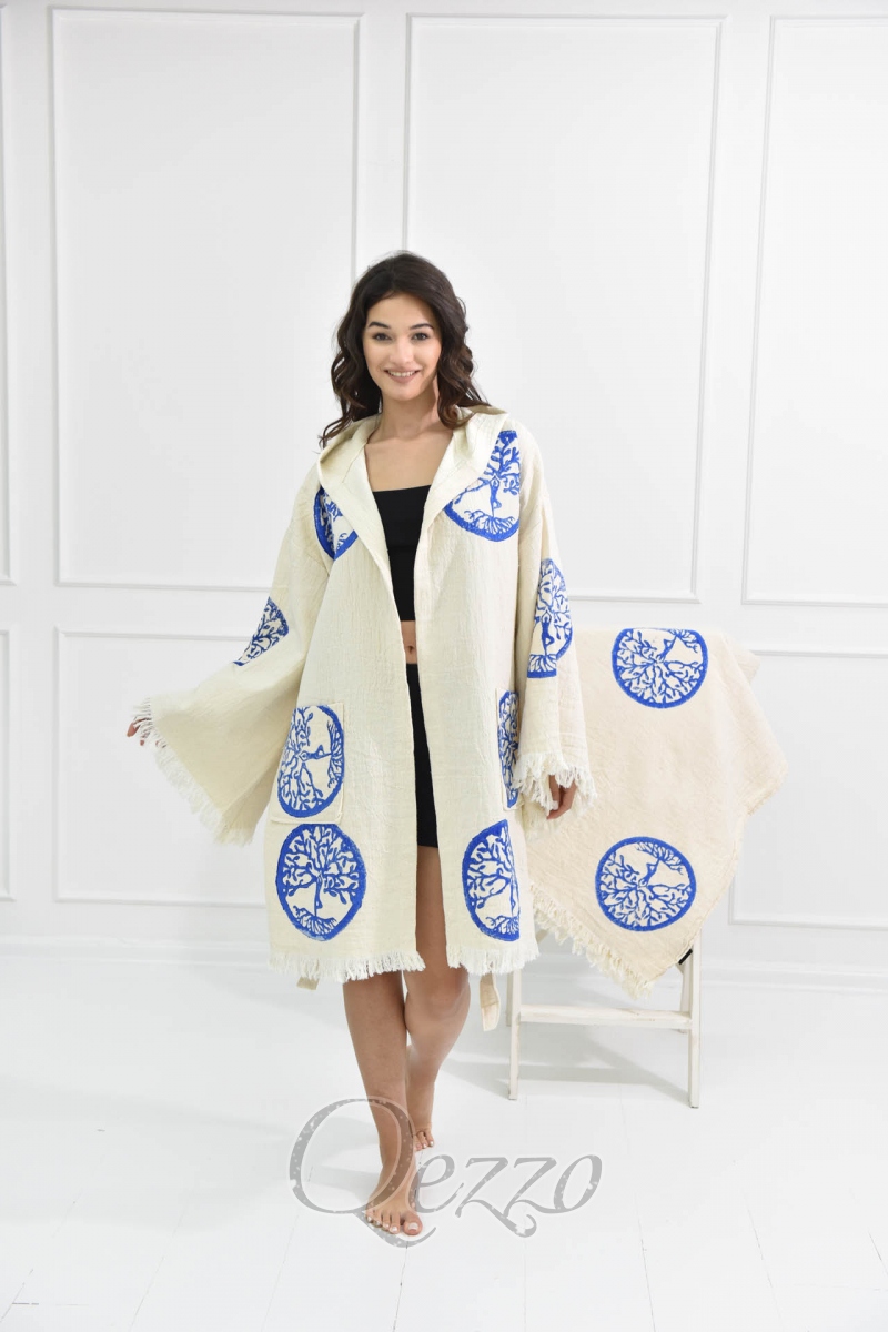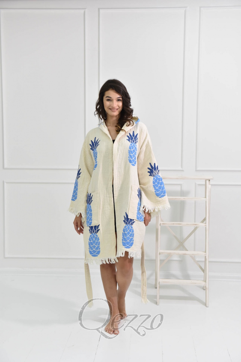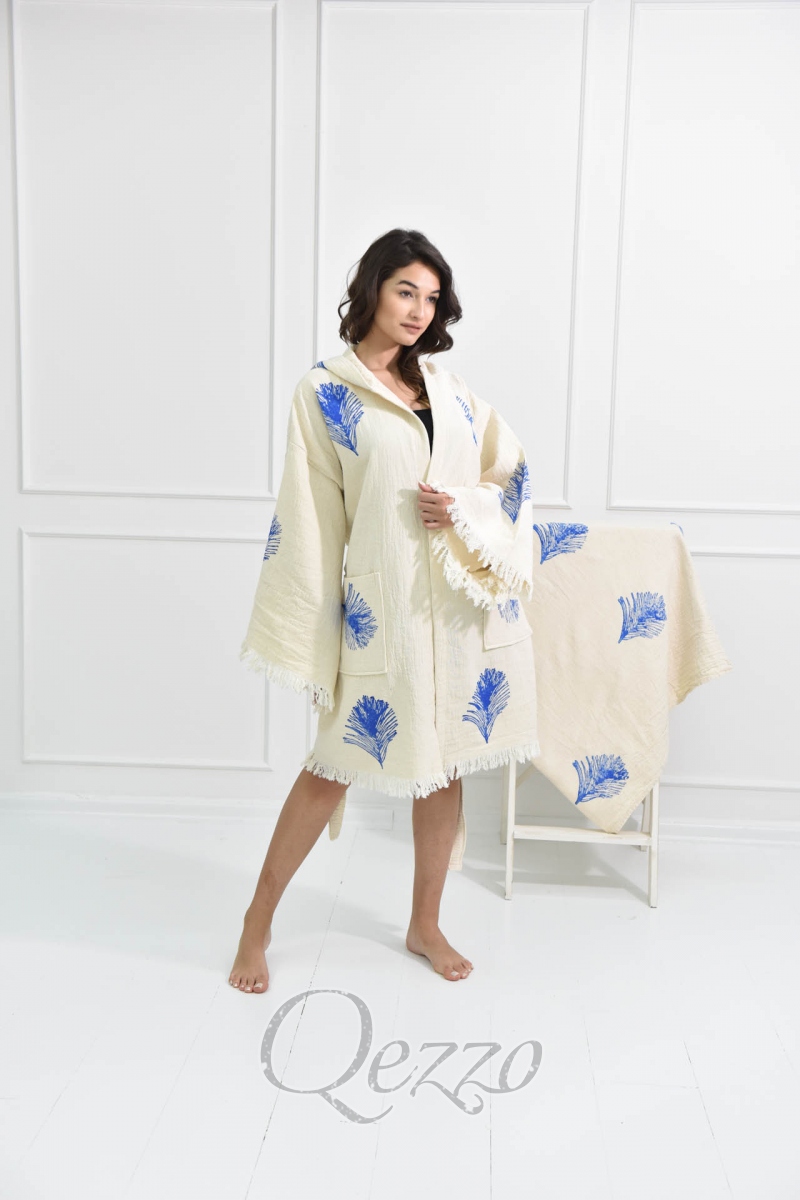Mavi Göz Detaylı Krem Kimono