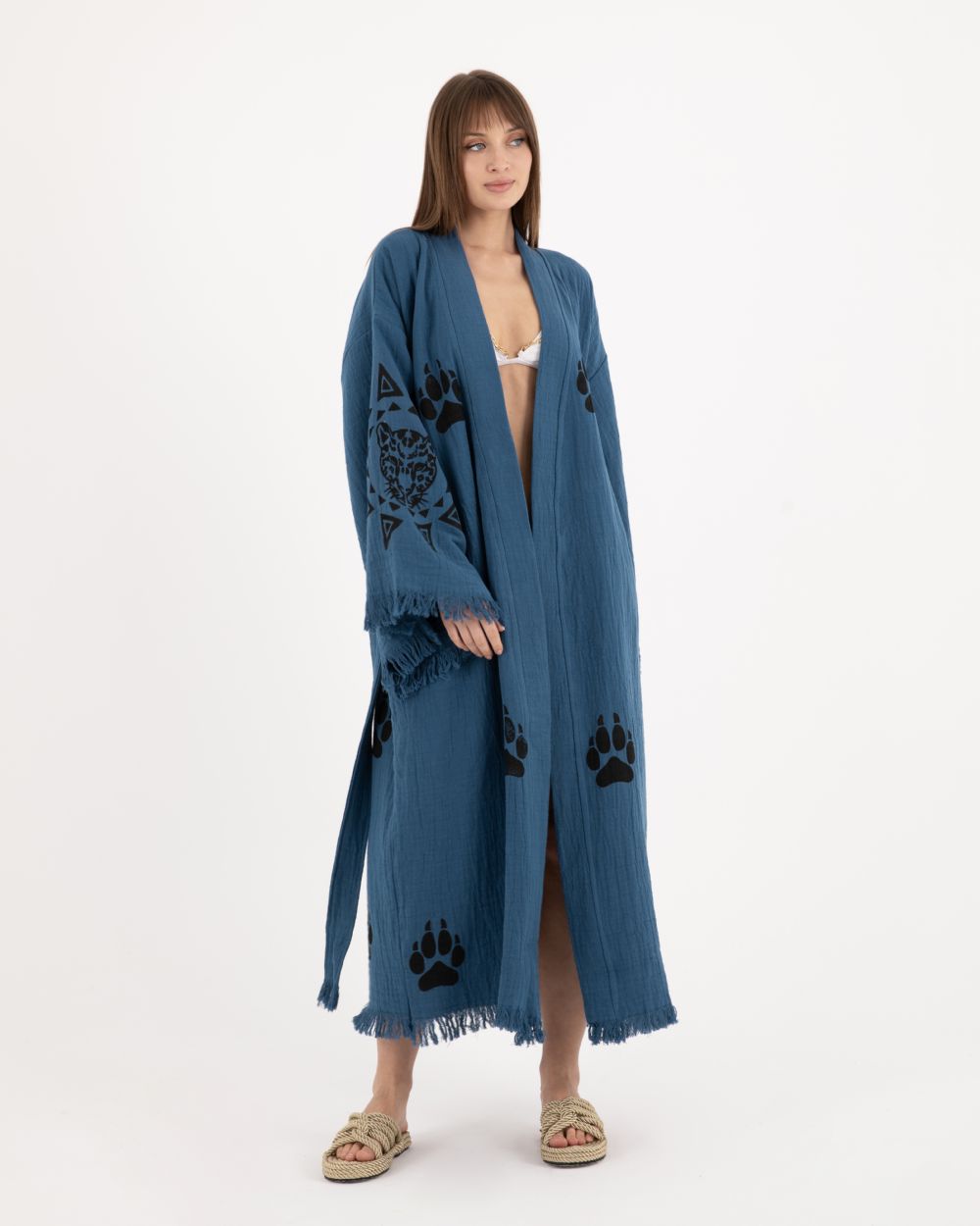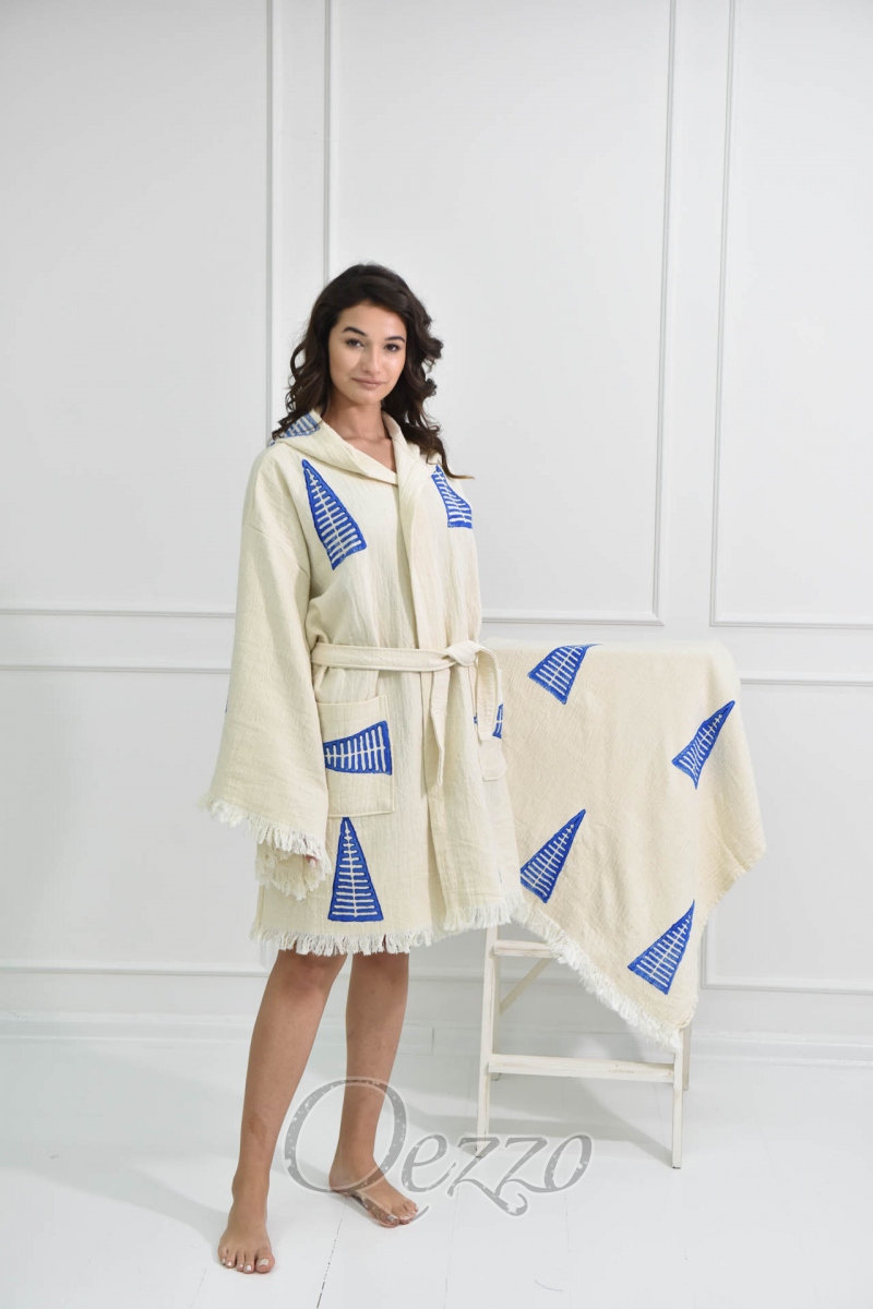 Mavi Pati Detaylı Kimono