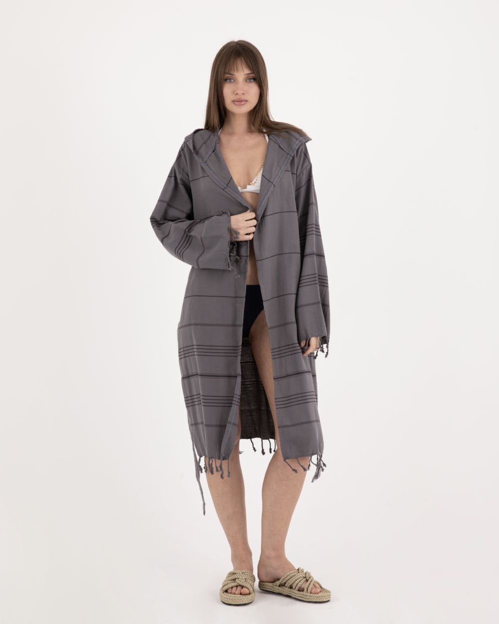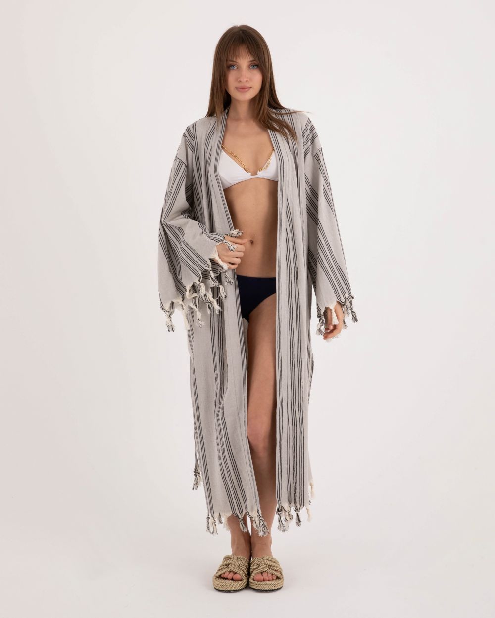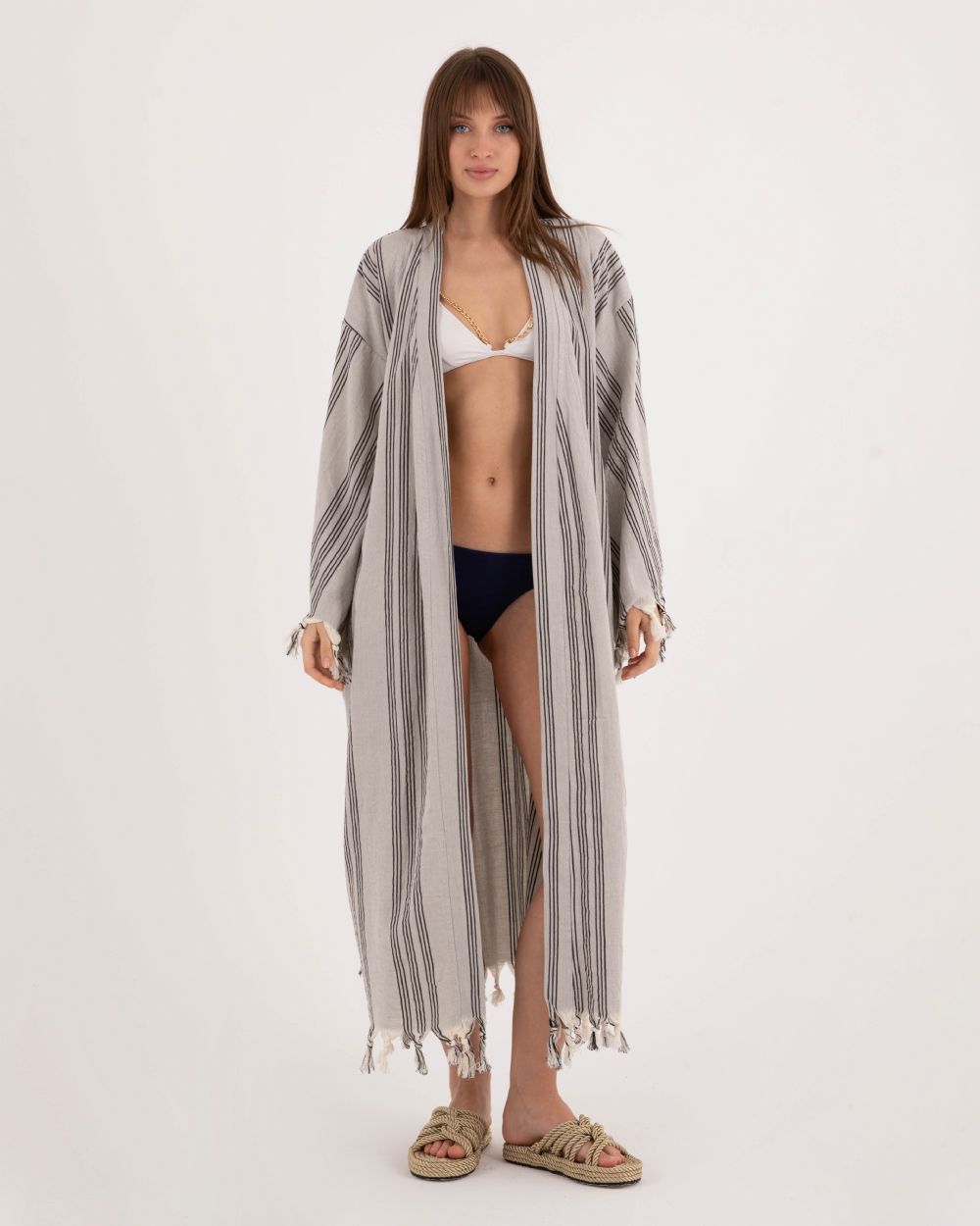 Gri Çizgili Kimono